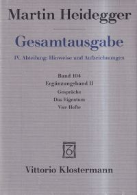 Heidegger, Martin: Gespräche. Das Eigentum : ein nicht gehaltener Vortrag ; Vier Hefte. Frankfurt/Main: Vittorio Klostermann 2025. 8°. XVI, 281 S., Leinen (sehr gut erhalten) Gesamtausgae,. 4. Abteilung, Hinweise und Aufzeichnungen, Band 104 = Ergänzungsband 2)