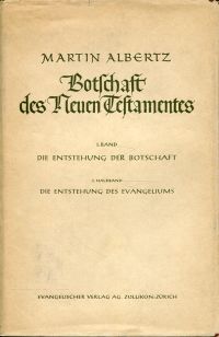 Albertz, D. Martin: Die Botschaft des neuen Testamentes. I. Band: Die Entstehung der Botschaft. I. Halbband: Die Entstehung des Evangeliums. Zollikon-Zürich: Evangelischer Verlag AG 1947. gr.-8°. 301 S. Leinen (SU randrissig; Papier gebräunt; Einband leicht aufgeworfen)