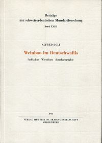 Egli, Alfred: Weinbau im Deutschwallis. Sachkultur, Wortschatz, Sprachgeographie. Frauenfeld: Huber 1982. 4°. XXIX, 443 S., 66 Illustrationen, Karte, broschiert (gut erhalten) (=Beiträge zur schweizerdeutschen Mundartforschung ; Bd. 23)