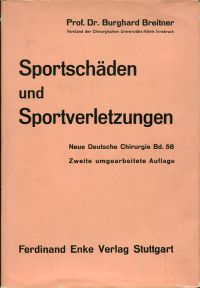 Breitner, Burghard: Sportschäden und Sportverletzungen. 2., umgearb. Aufl. Stuttgart: Enke 1953. 8°. VIII, 180 S., Mit 34 Abbildungen, Bibliographie, Leinen (Bibliotheksexemplar; Bibliotheksvermerke; Stempel auf Vorsatz; Schutzumschlag mit Einriss; sonst gut erhalten) (=Neue deutsche Chirurgie ; Bd. 58)