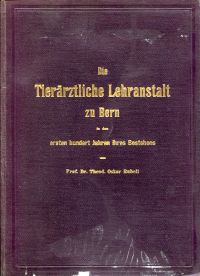 Rubeli, Theodor Oskar: Die Tierärztliche Lehranstalt zu Bern in den ersten hundert Jahren ihres Bestehens. Bern: Haller 1906. Gr.-8°. 276 S., sw-Abbildungen,1 Falttafel, Leinen mit goldgeprägter Schrift (Einband fleckig; leicht wasserwellig und wasserfleckig)