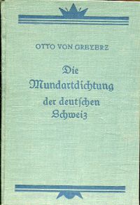 Greyerz, Otto von: Die Mundartdichtung der deutschen Schweiz. Frauenfeld: Huber 1924. Kl.-8°. 117 S., Leinen (leicht stockfleckig; gut erhalten) (=Die Schweiz im deutschen Geistesleben ; Bdch. 33)