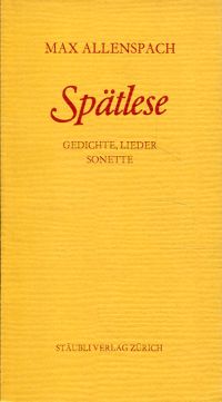 Allenspach, Max: Spätlese. Gedichte und Lieder, Sonette. Zürich: Stäubli 1983. 8°. 68 S., gebunden (gut erhalten)