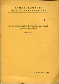 Ilkka, Seppo: A new arithmetization for finitely many-valued propositional calculi. Helsinki: Keskuskirjapaino 1966. 13 S., geheftet (Stempel auf Einband; wenig abgegriffen und leicht bestossen) (=Commentationes Physico-Mathematicae; Vol. 32, No. 8, 1966)
