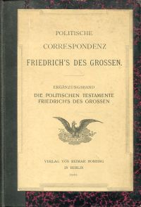 Preussen – Friedrich II.: Die politischen Testamente Friedrichs des Grossen. Berlin: Hobbing 1920. 8°. XII, 294 S. Halbleinen (Papier leicht gebräunt; teilweise leicht stockfleckig; gut erhalten) (=Politische Correspondenz Friedrich’s des Grossen; Ergänzungsband)
