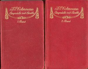 Goethe, Johann Wolfgang von – Eckermann, J[ohann] P[eter]: Gespräche mit Goethe in den letzten Jahren seines Lebens. 4.-6. Tsd. 2 Bände. Jena: Diederichs 1905. Kl.-8°. 490; 568 S., 1 Frontispiz, gebunden mit goldgeprägter Schrift und Einbandschmuck (Einband leicht berieben; altersgemäss gut erhalten)