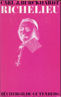 Burckhardt, Carl Jacob: Richelieu. 3 Bände. Frankfurt/Main: Büchergilde Gutenberg 1968. 8°. 454; 493; 651 S., zahlreiche Tafeln, Leinen (Schutzumschlag leicht berieben und leichten Randläsuren; sonst gut erhalten) Band 1: der Aufstieg zur Macht – Band 2: Behauptung der Macht und Kalter Krieg – Band 3: Grossmachtpolitik und Tod des Kardinals.