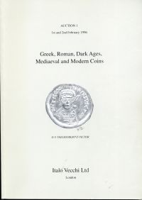 Greek, Roman, dark ages, mediaeval and modern coins. London: Italo Vecchi 1996. Lex.-8°. 46 S., zahlreiche zum Teil farbige Tafeln, broschiert (gut erhalten) (=Auction Bd. 1)