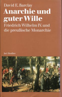 Preussen – Barclay, David E.: Anarchie und guter Wille. Friedrich Wilhelm IV. und die preussische Monarchie. Berlin: Siedler 1995. 8°. 535 S., sw-Abbildungen, Anmerkungen, Bibliographie, Register, Leinen (M) (Mängelstempel auf Buchblock; Schutzumschlag leicht berieben; sonst gut erhalten) Der Autor zeigt hier den ganzen Friedrich Wilhelm: das „Gesamtkunstwerk“, als das er sich selber auffasste, sein „monarchisches Projekt“, mit dem er den revolutionären Umbrüchen seiner Zeit zu begegnen hoffte, seine Erfolge und sein Scheitern. Er war der letzte König Preussens, sein Bruder, Wilhelm I., sollte der erste deutsche Kaiser werden.
