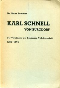 Sommer, Hans: Karl Schnell von Burgdorf. Der Vorkämpfer der bernischen Volksherrschaft 1786 – 1844. Burgdorf: Haller 1939. Gr.-8°. 238 S., broschiert (Umschlag angebräunt und leichten Gebrauchsspuren; Schnitt wenig befleckt: sonst gut erhalten)
