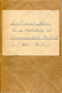 Voigt, Wolfgang: Sigelverzeichnis für die Bibliotheken der Bundesrepublik Deutschland und West-Berlins. Wiesbaden: Harrassowitz 1960. 8°. 155 S., broschiert in privater Einfassung (Umschlag von Buchblock gelöst; leicht lichtrandig; Einfassung abgegriffen)