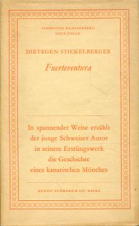 Stickelberger, Dietegen: Fuerteventura. Erzählung von d. Kanarischen Inseln. Basel: Schwabe 1954. 8°. 135 S. Pappband (Schutzumschlag hinten mit Einrissen und angebräunt; sonst gut erhalten) (=Sammlung Klosterberg : N.F.)