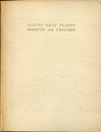 Platen, August von: Sonette an Freunde. Leipzig: Rowohlt 1911. 18 Bl., Pappband mit goldgeprägter Schrift (Ex Libris auf Innendeckel; Einbandecken leicht bestossen; sonst altersgemäss gut erhalten) (=Drugulin-Drucke, 8)