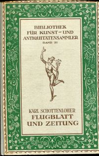 Schottenloher, Karl: Flugblatt und Zeitung. Ein Wegweiser durch die gedruckte Tagesschrifttum. Berlin: R. C. Schmidt & Co. 1922. Gr.-8°. 555 S., 73 Text-Abbildungen u. 15 Tafeln, Halbleinen (Ex Libris auf Innendeckel; altersgemäss gut erhalten) (=Bibliothek für Kunst- und Antiquitätensammler ; Bd. 21)