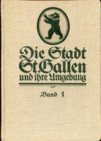 Felder, Gottlieb: Die Stadt St. Gallen und ihre Umgebung. Natur und Geschichte, Leben und Einrichtungen in Vergangenheit und Gegenwart. Eine Heimatkunde, Band 1 [Mehr nicht erschienen.] St.Gallen: Fehr [1916]. Lex.-8°. 580 S., 7 Beilagen, 44 Tafeln u. 143 Textillustrationen, Leinen mit Farbkopfschnitt (Vorsatz und Vortitel mit kleiner Fehlstelle ohne Textverlust; Vorderschnitt leicht stockfleckig; wasserfleckig ohne Textverlust)