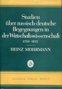 Mohrmann, Heinz: Studien über russisch-deutsche Begegnungen in der Wirtschaftswissenschaft (1750 – 1825). Berlin: Akademie 1959. Gr.-8°. 146 S., Leinen (Schutzumschlag mit leichten Randläsuren und leicht berieben; sonst gut erhalten) (=Quellen und Studien zur Geschichte Osteuropas ; Bd. 5)