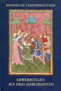 Dachs, Karl [Red.]: Erwerbungen aus drei Jahrzehnten 1948 – 1978 / Bayerische Staatsbibliothek. Abendländische u. orientalische Handschriften, Inkunabeln u. seltene Drucke, Noten u. Landarten ; Ausstellung April – Juli 1978. Wiesbaden: Reichert 1978. Gr.-8°. 185 S., sw-Abbildungen, broschiert (Vorderschnitt minimal befleckt; sonst gut erhalten) (=Ausstellungskatalog / Bayerische Staatsbibliothek [München] ; 16)
