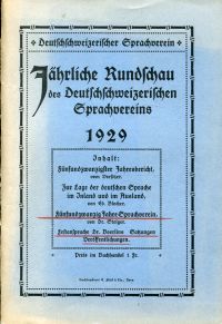 Steiger, August: Fünfundzwanzig Jahre Sprachverein. Zur Feier des 25jährigen Bestandes des Deutschschweizerischen Sprachvereins, 1929. Bern: Flück 1929. 8°. 80 S., geheftet (Umschlag teilweise abgeblasst; Papier altersbedingt leicht gebräunt; altersgemäss gut erhalten)