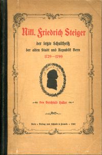 Haller, Berchtold: Niklaus Friedrich Steiger, der letzte Schultheiss der alten Stadt und Republik Bern, 1729-1799. Bern: Schmid & Francke 1901. 8°. 248 S., 1 Porträt, Bibliothekseinband (altersgemäss gut erhalten)