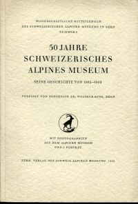Rytz, Walter: 50 Jahre Schweizerisches Alpines Museum. Seine Geschichte von 1905-1955. Bern: Verl. d. Schweiz. Alpinen Museums 1955. Gr.-8°. 24 S., 3 Bll. Tafeln, broschiert (Einband leicht angestaubt; sonst gut erhalten) (=Wissenschaftliche Mitteilungen des Schweizerischen Alpinen Museums in Bern; 9)