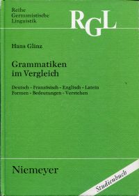 Glinz, Hans: Grammatiken im Vergleich. Deutsch – Französisch – Englisch – Latein ; Formen – Bedeutungen – Verstehen. Tübingen, Niemeyer, 1994. 8°. XXI, 962 S., Pappband (Einband leicht berieben: gut erhalten) (=Reihe Germanistische Linguistik ; 136 Reihe Germanistische Linguistik : Kollegbuch ; 1994)