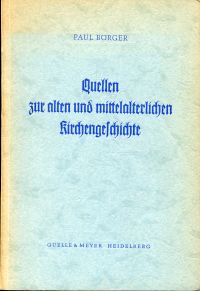 Börger, Paul: Quellen zur alten und mittelalterlichen Kirchengeschichte. Heidelberg: Quelle & Meyer 1953. Gr.-8°. 64 S., broschiert (Umschlag teilweise abgeblasst; Papier leicht gebräunt; sonst gut erhalten) (=Quellensammlung zum Lehrbuch für die evangelische Unterweisung an höheren Schulen, H. 3)