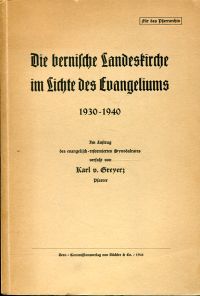 Greyerz, Karl v.: Die bernische Landeskirche im Lichte des Evangeliums. Jahrzehntbericht über die Evangelisch-reformierte Kirche des Kantons Bern, 1930-1940. Im Auftrag des Synodalrates verfasst. – Angehängt: Reinhard, E.: Die kirchliche Oekonomie. – Angehängt: Haller, Max: Jahrzehntbericht der evangelisch-theologischen Prüfungskommission. Bern: Büchler 1941. Gr.-8°. 388 S., broschiert (Papier altersbedingt leicht gebräunt; altersgemäss gut erhalten)