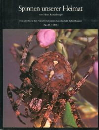 Russenberger, Hans: Spinnen unserer Heimat. Schaffhausen: Meili 1975. Gr.-8°. 71, [27] S., 56 zahlreiche zum Teil farbige Abbildungen, engl. broschiert (Umschlag mit Einriss und leicht berieben; Stempel auf Vorsatzsonst gut erhalten) (=Neujahrsblatt der Naturforschenden Gesellschaft Schaffhausen ; Nr. 27)