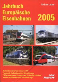 Latten, Richard: Jahrbuch Europäische Eisenbahnen 2005. Berlin: Lok Report 2004. 8°. 368 S., zahlreiche Farbabbildungen, broschiert (Einband mit leichten Gebrauchsspuren; gut erhalten)