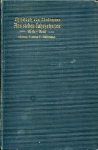 Tiedemann, Christoph von: Aus sieben Jahrzehnten. : Erinnerungen Leipzig: Hirzel 1905-1909. 8°. XIV, 504; VII, 487 S., Leinen mit umlaufendem Farbschnitt Bibliotheksexemplar; Bibliotheksvermerke; Einband wenig befleckt; sonst altersgemäss gut erhalten)