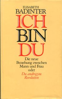 Badinter, Elisabeth: Ich bin du. Die neue Beziehung zwischen Mann und Frau oder die androgyne Revolution. Zürich: Ex Libris [1989]. 8°. 321 S., Anmerkungen, Bibliographie. Leinen (SU-Rücken abgeblasst; gut erhalten)
