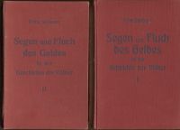 Schwarz, Fritz: Segen und Fluch des Geldes in der Geschichte der Völker. eine geschichtliche Studie, Band 2. Mischauflagen. 2. Auflage (Band 1); 1. Auflage (Band 2). Bern: Verl. Freiwirtschaftlicher Schriften 1931 (Band 1); s.a. (Band 2) 8°. 258; 247 S., Leinen (Besitzervermerk auf Vorsatz; Schnitt leicht angestaubt; Buchblock leicht verzogen; Rücken abgeblasst) Text in Fraktur (Band 1).