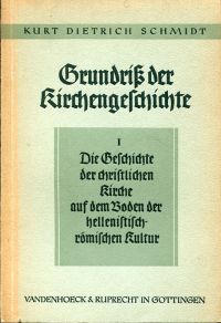 Schmidt, Kurt Dietrich: Grundriss der Kirchengeschichte. 4 Bände. Göttingen: Vandenhoeck & Ruprecht 1949-1954. 8°. 597 S., broschiert (Umschlag angebräunt; Papierbedingt gebräunt; Band 3 mit Bleistiftanstreichungen) Text in Fraktur.