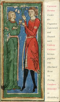 Carmina Burana. Lieder der Vaganten. Lateinisch und deutsch [nach Ludwig Laistner hrsg. von Eberhard Brost] 4. Aufl. Heidelberg: L. Schneider 1961. 8°. 274 S., Leinen (Schutzumschlag mit leichten Randläsuren; stockfleckig)