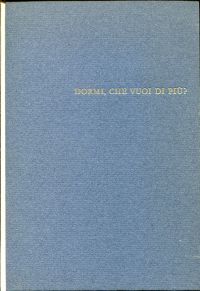 Oeschger, Johannes (Zusammengestellt): Dormi, che vuoi di più. [Anthologie dichterischer Texte über den Schlaf]. Basel: Geigy 1957. 8’. 62 S., Halbleinen (Besitzervermerk auf Vorsatz; Ex Libris auf Innendeckel; Papierbedingt leicht gebräunt; sonst gut erhalten) (=Documenta Geigy / Medomin)