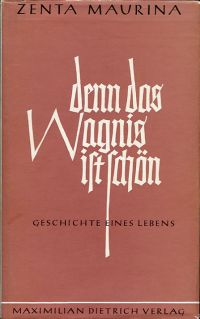 Maurina, Zenta: Denn das Wagnis ist schön. Geschichte eines Lebens. 7. Aufl. Memmingen: Dietrich 1968. 8°. 575 S., Leinen (ohne Vorsatzblatt; Schutzumschlag mit leichten Randläsuren; Papierbedingt leicht gebräunt; sonst gut erhalten)