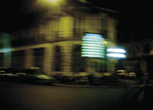 bildreich karten PK 34: nachtflug II. Querformat. 2003. (Paris, Neon, Nacht)