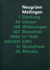 Neugrüen Mellingen. 1 Siedlung – 43 Häuser – 198 Wohnungen – 427 Bewohner – 4580 m3 Holz – 430000 kWh – 31 Grundrisse – 26 Monate. Zürich: CSA Real Estate u.a. 2016. Lex.-8°. 140 S., zahlreiche Farb- und sw-Abbildungen, Pläne, Kartoniert mit umlaufendem Farbschnitt (gut erhalten)