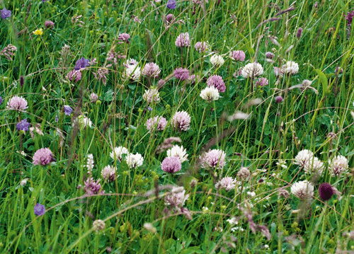 bildreich karten PK 1127: kleewiese II. Querformat. (Klee, Kleewiese, Alpwiese, Blumenwiese, Rotklee, Weissklee)