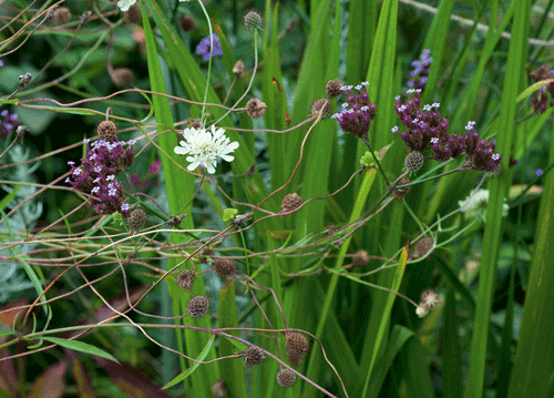 bildreich karten PK 1139: sommerabendtraum III. Querformat. (Garten, Skabiose, Geflecht, Gräser)