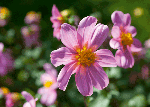 bildreich karten PK 1151: im nachmittagslicht. Querformat. (Dahlie, Garten, Bauerngarten, Sonne, Licht) Mindestbestellmenge: 15 Karten (auch assortiert).
