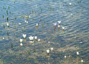 bildreich karten PK 119: schneeschmelze. Querformat. 2003. (Schneeschmelze, Krokus, Wellen, Wind, Alp, Spiegelung) Mindestbestellmenge: 15 Karten (auch assortiert).