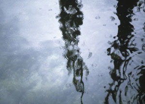 bildreich karten PK 149: regen I. Querformat. 2000. (Spiegelung, Regen, Regentropfen)