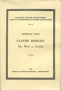 Liess, Andreas: Claude Debussy. Das Werk im Zeitbild. 2. Aufl; [Nachdruck der] 1. Aufl. Straßburg 1936. Baden-Baden: Koerner 1978. 8°. 422 S., Broschiert (Einband mit leichten Gebrauchsspuren; gut erhalten) (=Collection d’études musicologiques, 19)