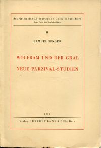 Singer, Samuel: Wolfram und der Gral. Neue Parzival-Studien. Bern: Lang 1939. Gr.-8°. 47 S., broschiert (Einband leicht fleckig und leicht angestaubt; Seiten unaufgeschnitten) (=Schriften der literarischen Gesellschaft Bern; 2)