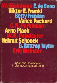 Hemmende Strukturen in der heutigen in der heutigen Industriegesellschaft. Bericht eines inderdisziplinären Symposiums mit Beiträgen von W. Böckmann, E. de Bono, V. E. Frankl, B. Friedan, V. Packard, C. N. Parkinson, A. Plack, H. Schoeck, E. Webster, G. R. Taylor u. W. R. Poindexter. Zürich: Gottlieb-Duttweiler-Institut 1969. 8°. 195 S., Leinen (Schutzumschlag berieben und leichten Randläsuren; sonst gut erhalten)