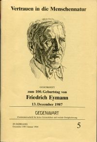 Eymann, Friedrich. Vertrauen in die Menschennatur. Gedenkheft zum 100,. Geburtstag von Friedrich Eymann, 13. Dezember 1987. 1987/1988. 77 S., 1 Porträt, einige Abbildungen, Geheftet (=Gegenwart, Jg. 49/Nr. 5, Dez. 1987/Januar 1988)