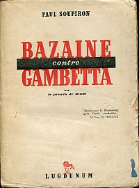 Soupiron, Paul: Bazaine contre Gambetta; ou, le procès de Riom. Lyon: Lugdunum 1944. 8°. 510 S., Broschiert (Besitzervermerk auf Vorsatz; Einband mit Gebrauchsspuren und angestaubt; Papier altersbedingt gebräunt) (=″Vérités 44)