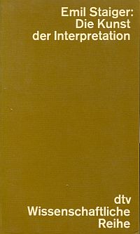 Staiger, Emil: Die Kunst der Interpretation. Studien zur deutschen Literaturgeschichte. München: Deutscher Taschenbuch Verlag 1971. 8°. 234 S., broschiert (Papierbedingt gebräunt; gut erhalten) (=dtv, 4078; Wissenschaftliche Reihe)