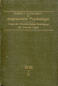 Zeitschrift für angewandte Psychologie, 2. Jahrgang. Organ der schweiz. Vereinigung der Freunde Coués. Zürich: Funk 1926. Gr.-8°. 480 S. Leinen (Papier altersbedingt gebräunt; altersgemäss gut erhalten)